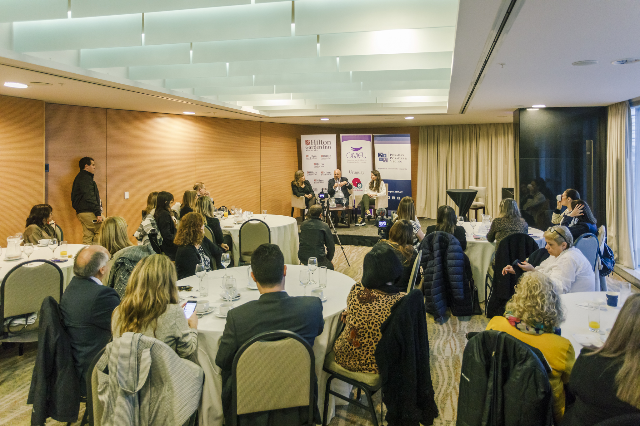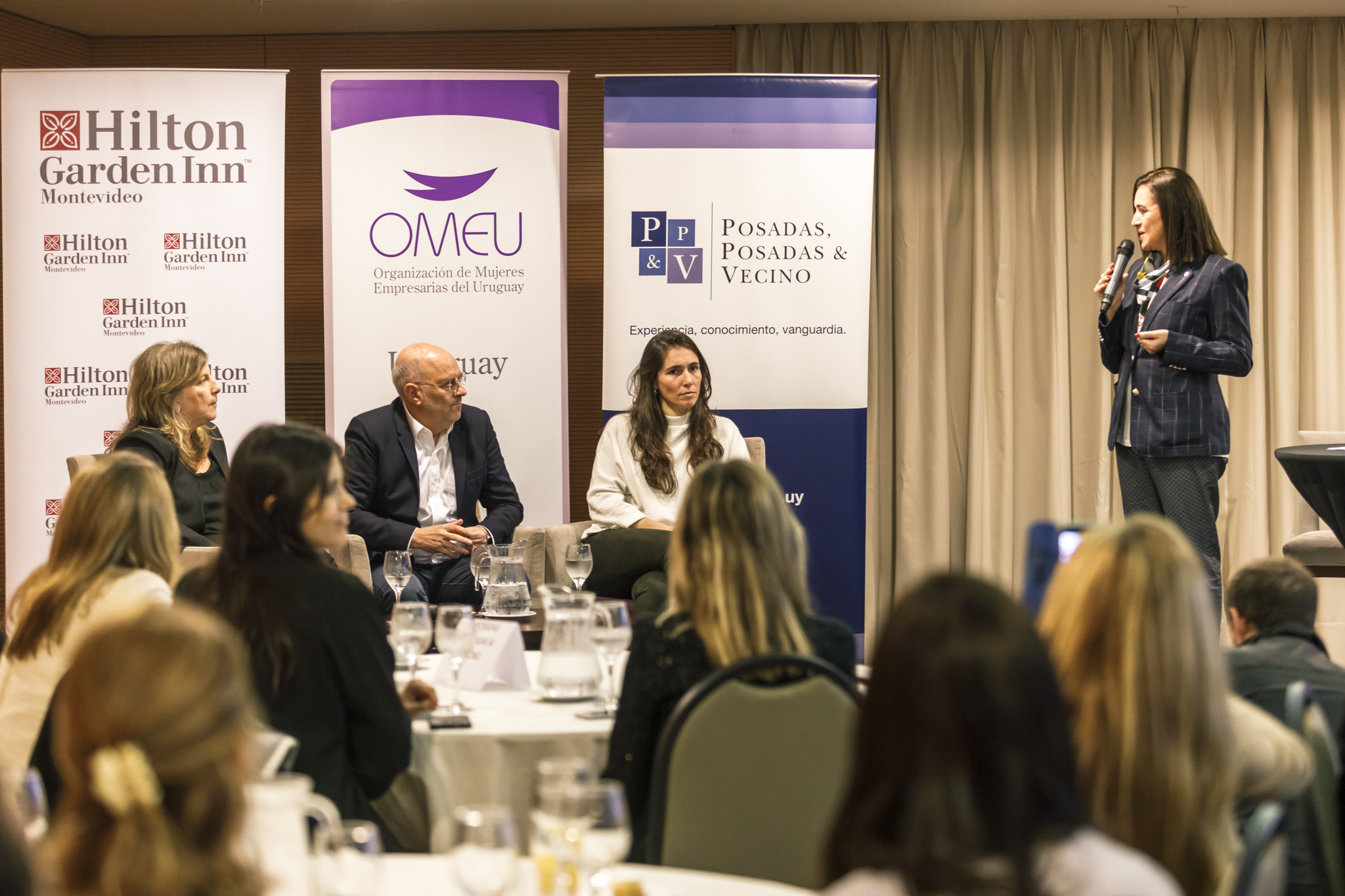 La Organización de Mujeres Empresarias del Uruguay (OMEU) junto al estudio de Posadas, Posadas & Vecino, invitaron a un desayuno de trabajo en el Hotel Hilton Garden a las socias de la organización para dar cierre a su ciclo de charlas “El Rol de la Mujer en el Futuro Gobierno” que comenzó el año pasado y en el cual se presentaron la mayoría de los precandidatos a la presidencia. En esta ocasión el orador fue el empresario Edgardo Novick, quien estuvo acompañado por la Dra. Analía Laiño, vicepresidenta del Partido y Lia Cambre, encargada de la campaña de Marketing Digital.